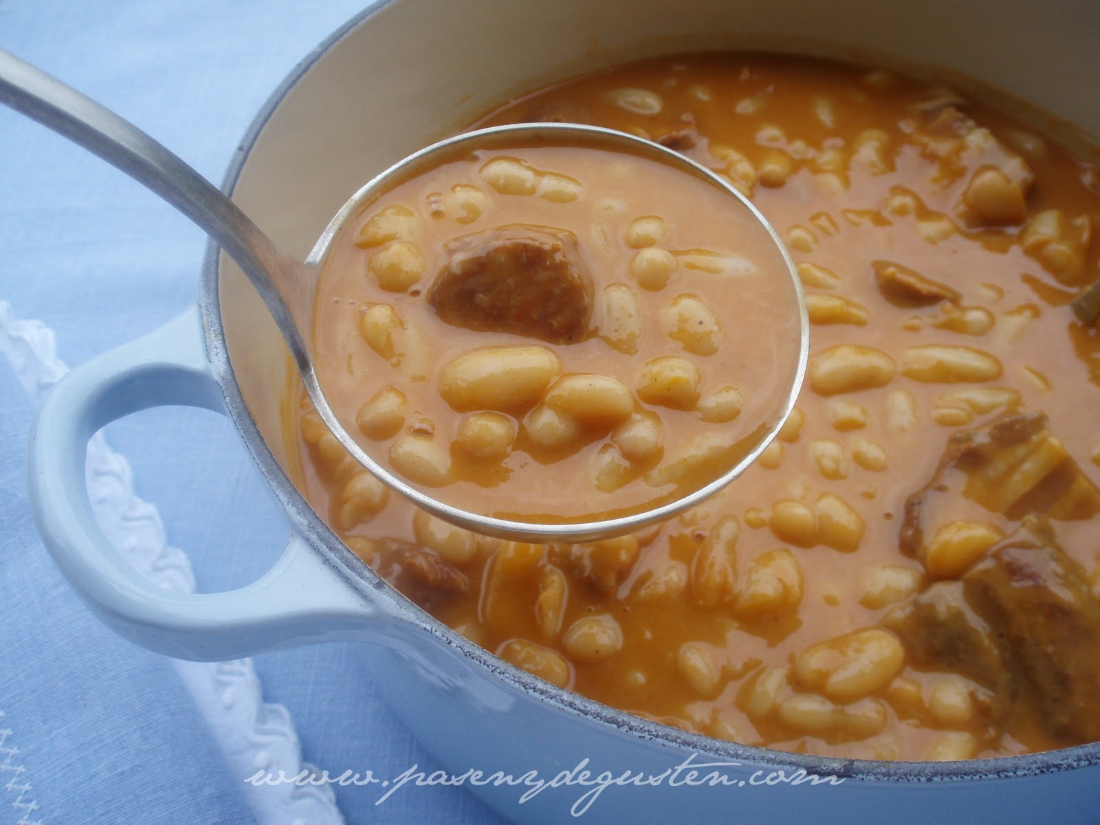 Hay varias opciones para hacer esta receta: empezar el proceso con judías blancas y cocinarlas, o hacer ensalada de judías blancas de bote. Claro que cuando todos los ingredientes son frescos eso de nota en el resultado, pero de cualquiera de las dos formas la ensalada queda bien. Pues tendrás que hacer caso a eso de «se dice» o a mí, así de fácil y sencillo. No tiene nada que ver!!! Lo único que hay que hacer para que no sean flatulentas, y que nadie hace, es masticarlas muy bien y muy despacio, contar 20 con cada bocado con lo que consigues una primera digestión en la boca por la ptialina de la saliva. Pelearse con la tapa, conseguir abrir el bote, tirar el líquido… la secuencia habitual en muchas cocinas cuando nos enfrentamos a un bote de conservas. Pero resulta que algo estamos haciendo. Tiempo de cocción de las alubias blancas. A diferencia de los garbanzos, las alubias blancas se introducen en la olla cuando el agua está todavía fría, es decir, puedes echar en primer lugar las alubias blancas y después añadir agua fría hasta que las cubra un par de dedos más o menos y poner fuego fuerte durante un tiempo de cocción reducido, hasta que comience a hervir.